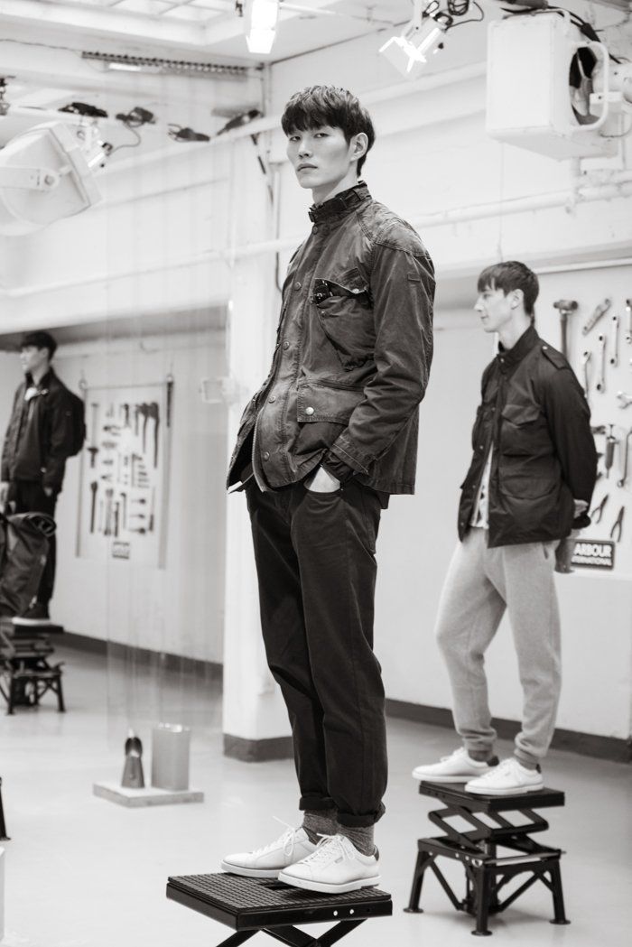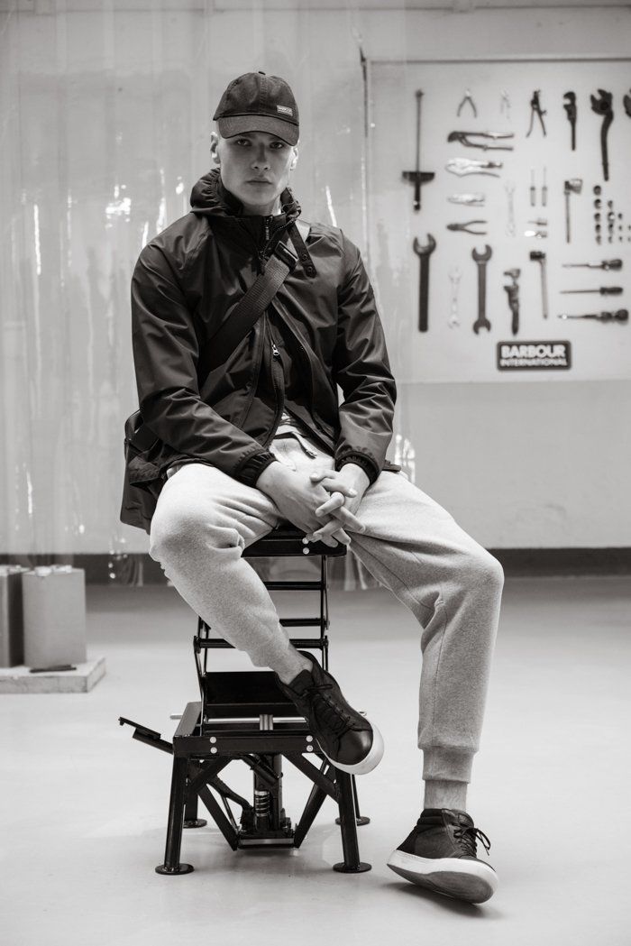 This season at London fashion Men's spring summer 18, Barbour International showcased a 'motorcylce garage' themed presentation of it rich heritage spanning over a decade. Photography by Issa Yazji.